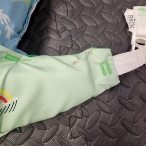 Keep your child safe and stylish with the Kids Swim Puddle Jumper. Featuring a fun dolphin design, this green and blue vest is perfect for water adventures. 30-50 lbs