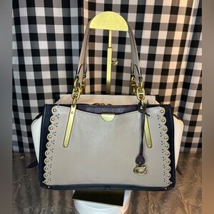 Stylish Coach shoulder bag with signature pattern. Dark blue color for a chic look. Perfect for everyday use.