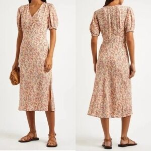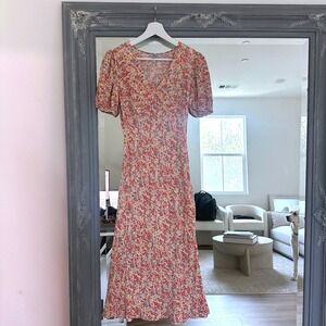 Rails V Neck Puff Sleeve Empire Waist Shelley Midi Dress in Multi Wildflower XS
