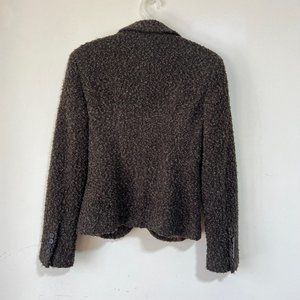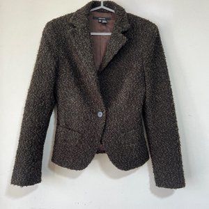 NEW ZARA Wool Bouclé Fitted Blazer in Brown Single Button Tailored Jacket Size S