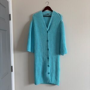 Free People Offside Cardigan Longline Chunky Knit Button Up Sweater in Blue