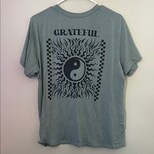 Light blue tee with yin yang design. Soft fabric. Perfect for casual wear.
