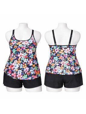22W Plus Size Flowy Floral Tankini w High Waist Black Shorts NWT