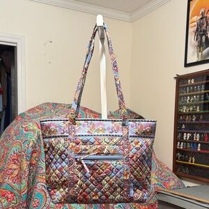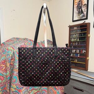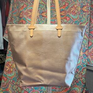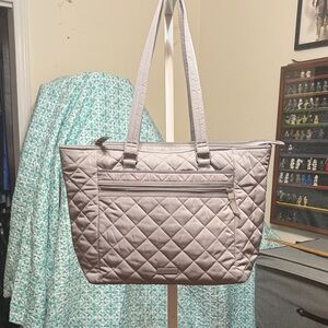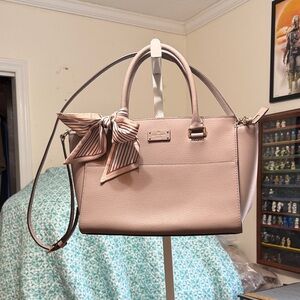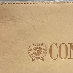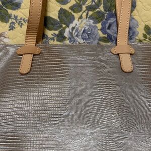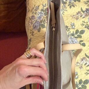 Only call out is a couple of tiny dark spots on bottom. Other than that it is in perfect condition! I have never carried this one. It has a zipper closure.