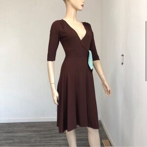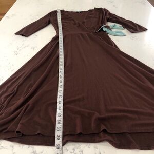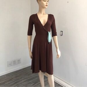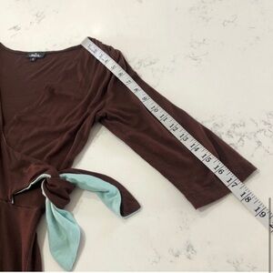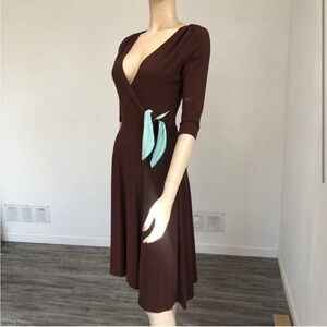 Mica brown & blue dress V-neck/ super soft fabric