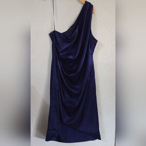 Chic one shoulder design. Luxurious satin fabric. Perfect for elegant events.
