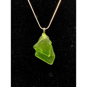 Uranium glass has been widely collected and worn for over 100 years. It emits extremely low levels of radiation comparable to normal background exposure and is considered safe for everyday wear in solid glass form. This pendant is polished and sealed, with no dust or loose material.