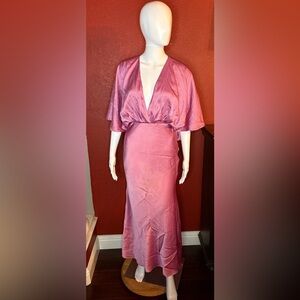AIIFOS Isabelle Pink Crinkled Silk Satin Maxi Dress. Size XS