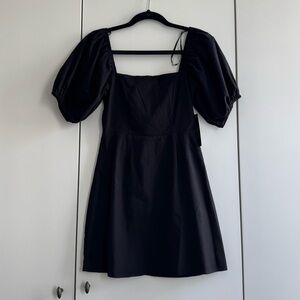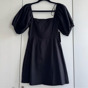 Chic black mini dress with puff sleeves. Square neckline adds elegance. New with tags