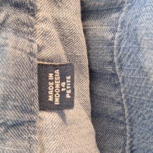 Stylish wide-leg jeans in denim blue. Perfect for casual wear is a day at the beach. very lightweight and comfy. bottom zipper and clasp closure waist with drawstring also. front and back pockets. size is 14 petite. waist is 16, rise is 10, inseam is 27, leg width is 11. excellent condition
