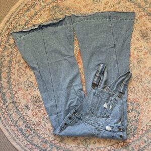 Wisteria Lane Super Wide Leg Denim Distressed Overalls — Size Medium