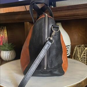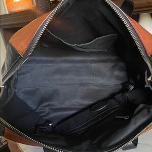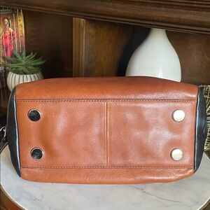 Fossil Unisex Cognac & Black Leather Satchel