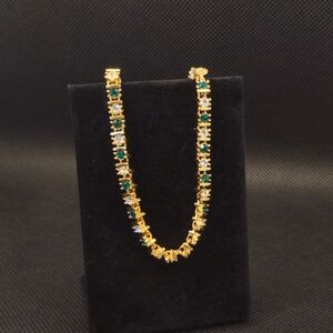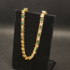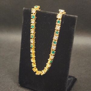 Vintage Tennis Bracelet Emerald And White Crystal Gold 8"