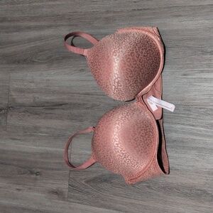 Victoria's Secret Body By Victoria Push Up Bra Desert Sand Pink Sz 40DD. Has leopard animal print embossed pattern. Does also convert to criss cross straps in the back. I lost weight so my loss is your gain. Great condition, always washed delicate and line dried. Retail on this bras is $54.95. Bundle discounts available; Ships immediately from smoke-free home.