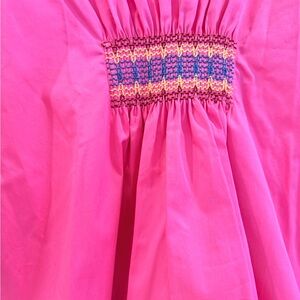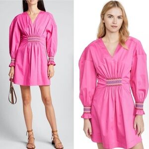 Adorable New with Tags Derek Lam 10 Croby Cover-Up Dress - Katrina in vibrant pink. Puff long sleeves, V neckline, smocking & embroidered detailing at bodice and cuff, flare front with darted back - make this a flattering fit. 97% cotton/ 3% elastane- some stretch. Sits well above the knee.