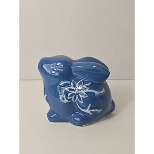 Burton & Burton Blue Ceramic Rabbit Figurine Statue Floral Embossed Designs