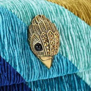 The Mini Velvet Kensington features a velvet striped exterior with crinkled effect. The antiqued brass eagle head sits on the front flap.