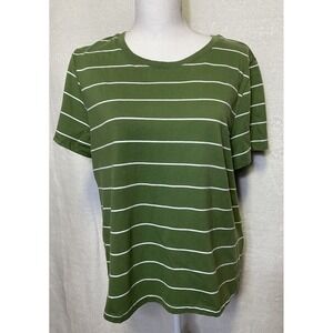 Style & Co Women's XL Feeder Green Striped Cotton T Shirt Top NWT