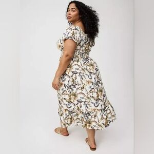 Torrid Chalis Floral Tea Dress Sz 0 0X L/XL Midi Vacation Tropical Resort Cruise