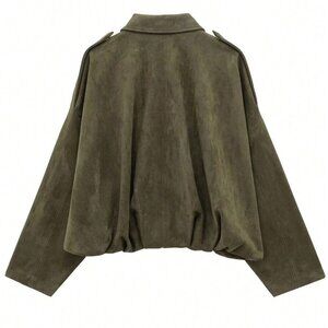 Army Green Casual Women's Loose Long Sleeves Zip up Bomber Coat Jacket