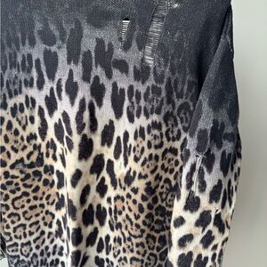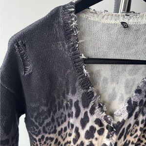 Stylish R13 cotton cardigan with bold leopard print. Features a deep V-neck and button closure. Perfect for layering.