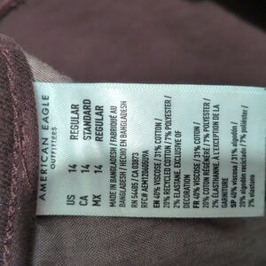 American Eagle High Rise Burgundy Capris Sz 14. Next level stretch, very stretchy and comfortable. Waist is approximately 17" laid flat, rise is approximately 11", inseam is approximately 18", cropped just under the knee. Color is a deep berry / wine / burgundy. Excellent condition, only worn once but I lost weight. **I also have these in light denim listed if you want both**. Ships immediately from smoke-free home.
