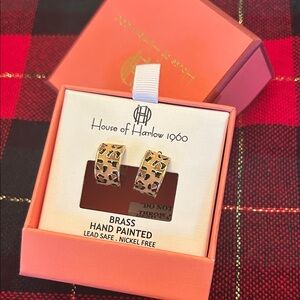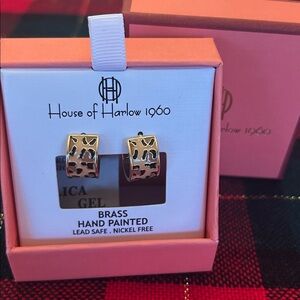 HOUSE OF HARLOW 1960 Brass Animal Print Leopard Cheetah Stud Earrings NEW