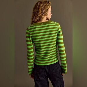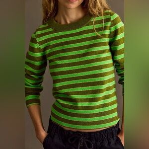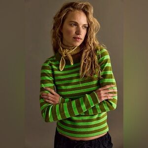 NWT Free People Malibu Striped Cashmere Crewneck ~Lime Combo~