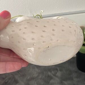 Add charm to your space with this adorable ceramic sloth hanging planter. Its cream color complements any decor, making it a perfect home accent. You can add a longer rope or remove for a desk top decor. The inside plant & rocks not remove able. No Chips. Clean from a smoke free home. Approx 5.5” inch