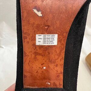 Rachel Comey Rouse high heels, black suede, kidskin leather lining, leather soles, squared peep toe, 3.5" cone high heel, size 7, preowned and shows wear on the soles and suede - see photos