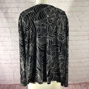 Dressbarn black and white long sleeve open front cardigan. Size 18W. Made of a polyester / spandex blend so it does have some stretch to it. Hand wash recommended. Great condition. No rips, holes or stains. Smoke free home.