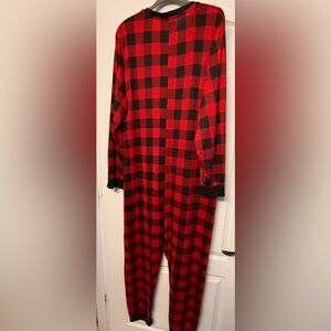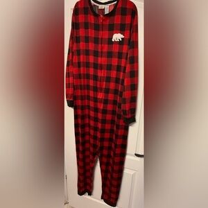 Dearfoams XL Buffalo Plaid One Piece Pajamas Cozy Bear Patch Lounge Sleeper