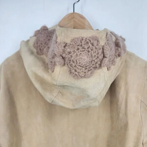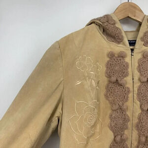 Boston Proper Women's Crocheted & Embroidered Long Leather Duster Jacket Size 16