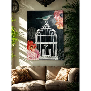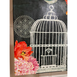 Kathryn White Original Canvas Painting Bird Cage Floral Wall Art Signed 32 x 24