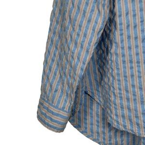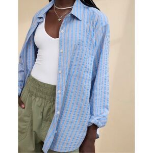 Aerie Button Up Shirt Blouse Seersucker Striped Oversized Blue Size Medium