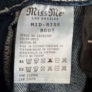 Miss Me jeans with vibrant embroidered pockets. Excellent condition. Mid-rise boot cut. Style E82B158S, color M913.