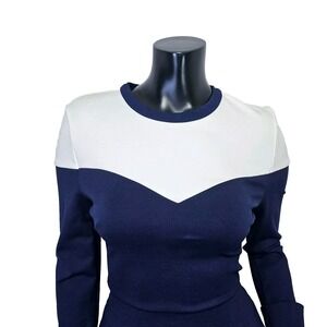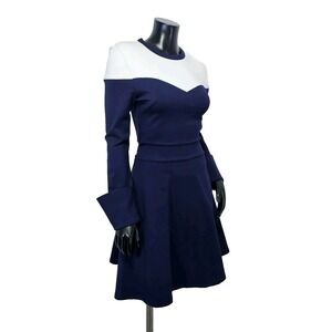 Vicky & Lucas Navy White Colorblock Fit Flare Dress Long Sleeve Size S