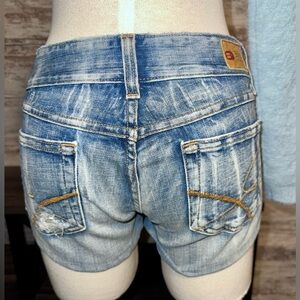 Stylish BKE denim blue women's shorts perfect for casual outings. Comfortable fit with a classic design.