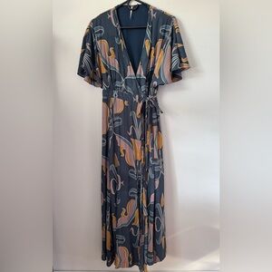 Free People Boho Art Nouveau Maxi Wrap Dress - size L