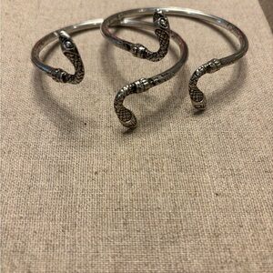 Vintage Cellini Sterling Silver Double-Headed Snake Bypass Bangles - Set of 2