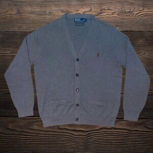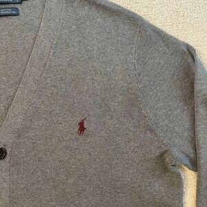 Polo Ralph Lauren Mens Pima Cotton Cardigan Sweater Grey Large V-Neck Button Up