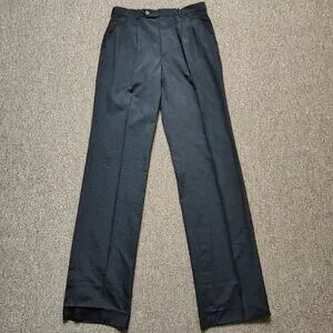 Vintage HUNTING HORN Pants Men 32 Black Wool Blend Pleated Unhemmed Slacks