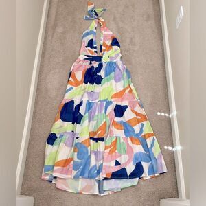 OLIPHANT $328 Cross Front Halter Maxi Dress Cotton Poplin Size Large