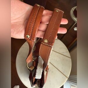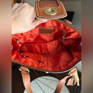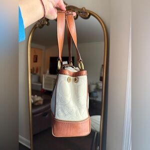 Coach Hamptons Turnlock Cream Embroidered Cs Tan Leather Trim Satchel Handbag