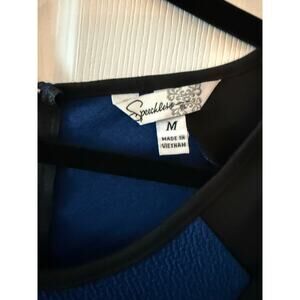 The elegant color combination of blue and black creates a sophisticated and stylish look that's sure to impress. Designed by the popular brand Speechless, known for their trendy and comfortable designs, this dress is a women's size Medium and offers a flattering silhouette.