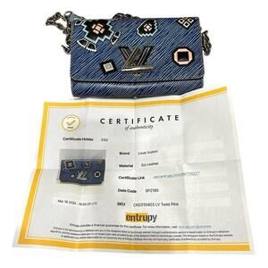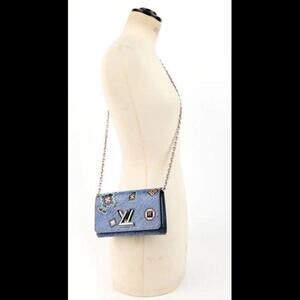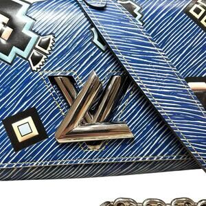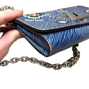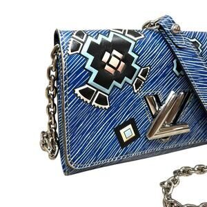 LOUIS VUITTON Aztec Denim Blue Epi Leather Twist Chain Wallet Crossbody Bag +COA