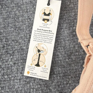 Item: Womens wireless Sublime Hands-Free Pumping and Nursing Bra with adjustable straps and back hook-and-eye closure.