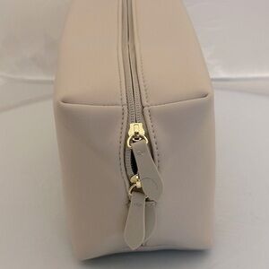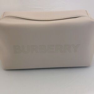 Elegant Burberry pouch in beige neoprene with silicone zipper pulls. Ideal for storing essentials.