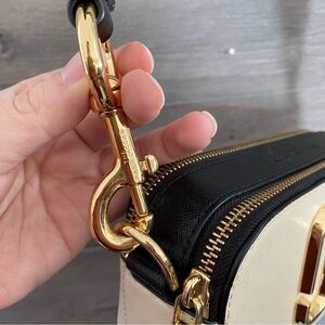 Marc Jacobs The Snapshot Crossbody Bag in New Cloud/Gold Colorway. In great pre owned condition with no damage or flaws noted.