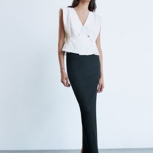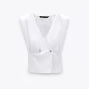 Poplin white blouse with shoulder pads and a bedazzle button front. One jewel missing from one button, worn twice and never again.